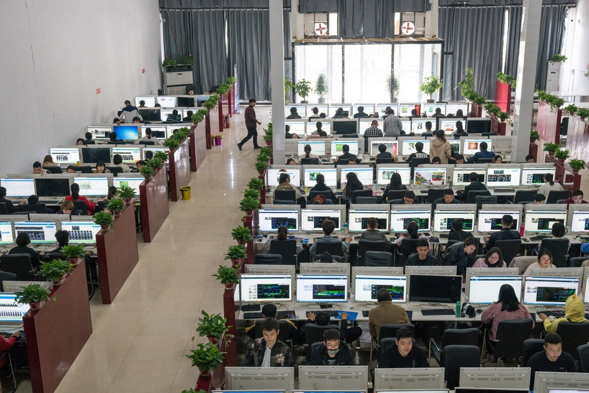 Foto: Yang Cong, The people behind automation Hier zie je werknemers op het hoofdkwartier van het technologie bedrijf ‘Ruijin’ in Jiaxian, China, waar men constant bezig is met het identificeren van objecten in afbeeldingen.